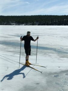 Well, there is the last skiing, and there is the last skiing. 20°C plus. The ice still holds, and the snow still carries somewhat on the lake Ounasjärvi. So I took some skiing equipment out again from the storage, where it was already waiting for the summer to pass, to reactivate my skates and to go for some summer fun skiing ..